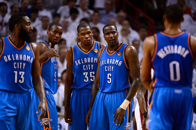 “在雷霆,我们刚在乐透区选了个大个子,史蒂文-亚当斯。‘帕金斯,他会和你竞争上场时间。你们要分摊上场时间了。’所以我开始明白了,你们这是准备让我走人了,对吧?然后你们接下来怎么样了?你们那套阵容再也没回过总决赛了,因为你们没有了那个大个子。你们懂我意思吗?”