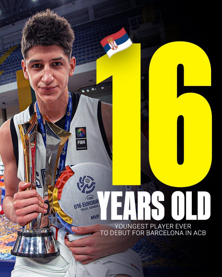 10月13日讯 在昨天巴萨86-91不敌列伊达(Hipopos Lleida)的西篮甲比赛中,巴萨球员塞尔维亚天才少年尼古拉-库斯图里察创造历史——他以16岁5个月12天的年龄,成为巴萨队史史上最年轻的西篮甲联赛出场球员。此前的纪录是埃里克-维拉保持的16岁6个月29天。